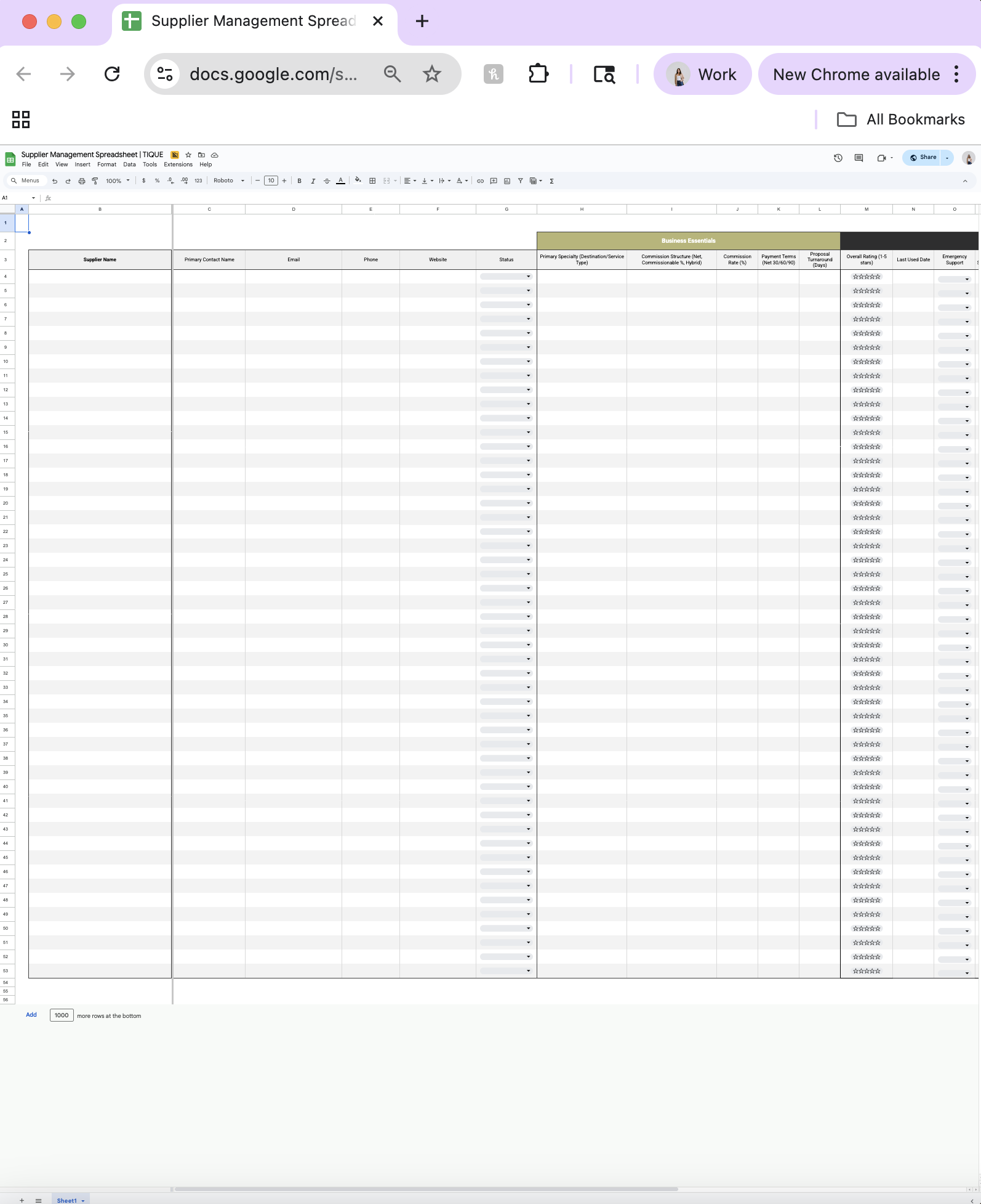 • Fully Customizable: Add columns, modify categories, create additional tabs for specific supplier types
